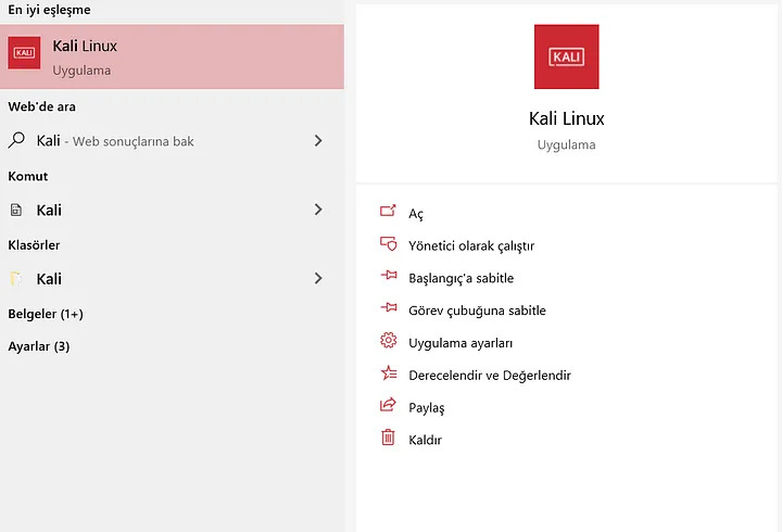 Kali Linux’u Microsoft Mağazasından yüklüyoruz